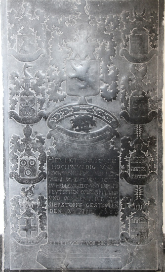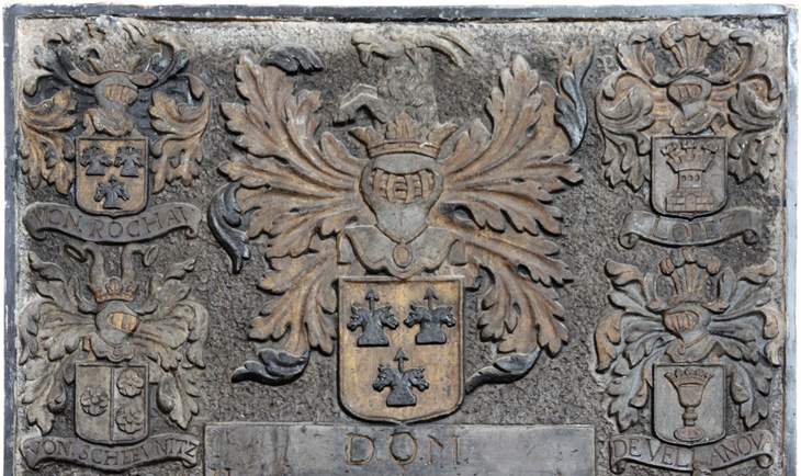 Genealogie der Rochow-Grabplatte: https://www.genealogieonline.nl/genealogie-peeters-rouneau/I12221.php