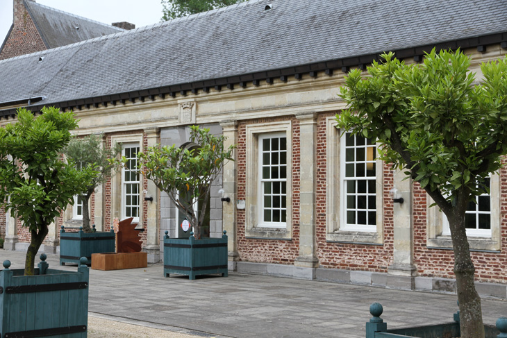 An der Nordseite der Anlage liegen etliche weitere Gebäude zwischen der Maastrichter Allee und der 140 m langen Wassergrabenkante. Wenn man von Westen her kommt, betritt man das Gelände durch das Tor zwischen einem einzelnen Rundturm und dem Gästehaus. Dieser Bau diente als Unterkunft für Gäste, Kranke etc., es war zugleich Hospiz. Hier ist heute ein Café eingerichtet. Durch ein Mauertor gelangt man in den französischen Garten, ein 57 m breiter und 54-64 m langer geometrischer Garten mit einem Brunnen in der Mitte und vier großen Rabatten und einem Viereck von Bäumchen außenherum. An der Nordseite befindet sich ein 55 m langer Trakt mit der Orangerie in der Mitte. Im Osten wird dieser Garten von der Kirche und der Galerie begrenzt.