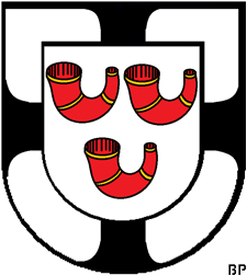 Sein Familienwappen zeigt in Silber drei (2:1) rote Hifthörner ohne Band. Als Deutschordensritter und Landkomtur unterlegte er sein Familienwappen zusätzlich mit einem Deutschordensschild. Erst später wurde die Kombination im gevierten Schild bei den Landkomturen von Alden-Biesen üblich. Die Helmzier ist zu rot-silbernen Decken auf einem Kissen eines der Jagdhörner.