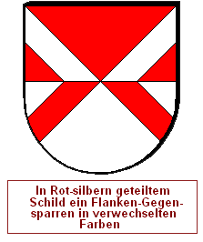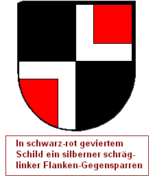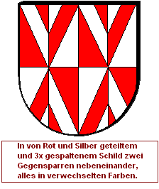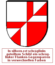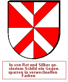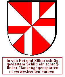 Man kann natürlich auch mit mehreren Farben arbeiten. Wenn man nun die Teilungen des zweiten Heroldsbildes nicht als Winkelhalbierende positioniert, sondern entlang der Kanten des Gegensparrens, ist das sogar sehr gut möglich. Ein Flankengegensparren und ein Gegensparren wird mit einem schräggevierten Schild kombiniert, und ein schräger Flankengegensparren wird mit einer einfachen Quadrierung kombiniert.