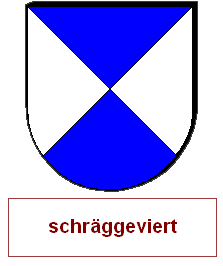 Sinnvoll ist - und dies eine Empfehlung - bei der Ansprache immer mit der Farbe zu beginnen, die am weitesten oben und heraldisch rechts liegenden Platz gegeben ist. Analoges gilt für Ständerungen ins Eck, wo hier eine Serie ins rechte Obereck geständerter Schilde gegeben wird. Auch bei Ständerungen ins Eck gilt, daß sie erst ab Anzahl der Plätze n = 5 sinnvoll als Ständerung bezeichnet wird, denn n= 2 wäre eine Schrägteilung, n = 3 käme einer Spitze nahe, und n = 4 käme einer schrägen Spitze mit Schrägteilung sehr nahe. Ab n= 5 gibt es keine Konflikte mit anderen Begrifflichkeiten.
