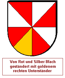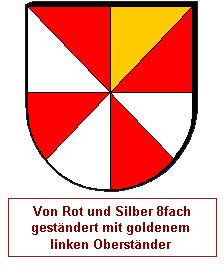 "von Gold und Rot zu 10 Plätzen geständert" oder