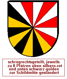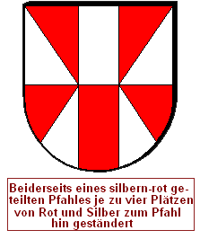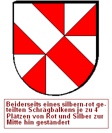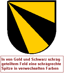 schrägrechter Keil. Alternative: In silbern-rot geviertem Schild