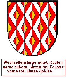 Bei Wechselfensterrauten können einzelne Felder wiederum farblich abweichen. Die Basis der Blasonierung bildet der wechselfenstergerautete Schild, wo nun die Farben der Raute bzw. des Fensters jeweils vorne und hinten, soweit notwendig, einzeln angegeben werden. So entstehen Muster bestechender Schönheit mit sogar einem leichten 3D-Effekt.