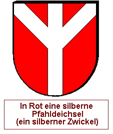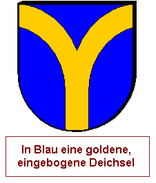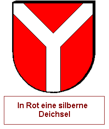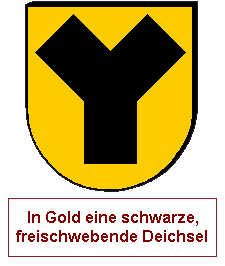 Woher kommen die Begriffe? Eine Deichsel ist bei Zuggespannen, Kutschen, Ochsenkarren etc. eine Holzkonstruktion, die hinten, dem Kutscher zugewandt, mit dem Lenkkranz der Vorderachse verbunden ist und vorne der Befestigung der Zugtiere dient. Vorne ist sie häufig gegabelt, wenn sie nur für ein Zugtier bestimmt ist (oder allgemein eine ungerade Anzahl), wobei das unpaarige Tier in der Mitte zwischen beiden Gabelenden läuft. Solch eine Konstruktion nennt man auch Gabeldeichsel. Das Schildbild nimmt darauf Bezug, wie der Kutscher die Deichsel dieht: Gerades Stück unten, Gabel oben. Analog wird die Deichsel in der Heraldik auch Gabel genannt. Ein weiterer Begriff dafür ist Schächerkreuz, eine Y-artige Kreuzform, die im späten 13. und frühen 14. Jh. in der Christusdarstellung auftrat.