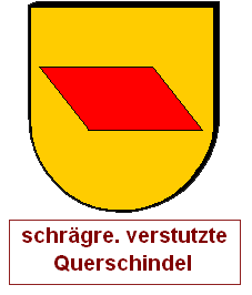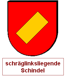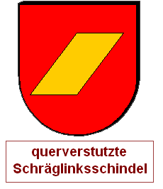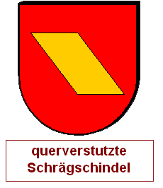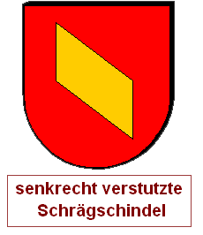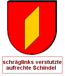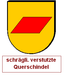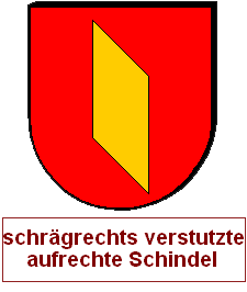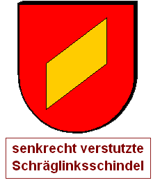 Ist das Objekt ohne rechte Winkel, hat aber zwei gegenüberliegende Paare ungleich langer Seiten und nicht senkrecht aufeinanderstehende Diagonalen, wird es als verstutzte Schindel angesprochen. Eine solche kann aufrecht, quer, schräg (= schrägrechts) oder schräglinks liegen, entsprechend der Ausrichtung der beiden langen Seiten. Wie sie jetzt verstutzt ist, darüber entscheidet die Lage der beiden kurzen Seiten. Sind die kurzen Seiten parallel zur Seitenkante des Schildes, also senkrecht, wird das Objekt als senkrecht verstutzt bezeichnet.