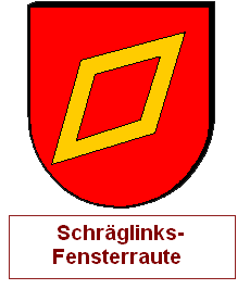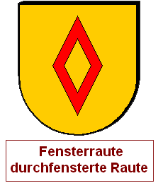 Eine Raute, die in der Mitte wieder rautenförmig ausgeschnitten ist und wieder die Feldfarbe zeigt, wird Fensterraute genannt. Als "gefenstert" wird eine Figur nur dann angesprochen, wenn die Feldfarbe innen wieder zum Vorschein kommt. Herrscht innen eine andere Farbe als außen, kann man je nach Anordnung von einer Figur sprechen, die mit einer weiteren Figur belegt ist, oder von einer Figur, die bordiert bzw. gesäumt ist.
