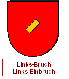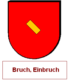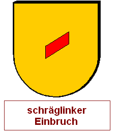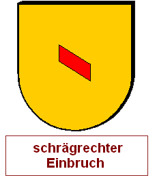 Ein Einbruch ist in der Heraldik kein Eigentumsdelikt, sondern bezeichnet genauso wie die Kurzform "Bruch" die Reste eines beiderseits großzügig abgeschnittenen Schrägfadens oder einer Schrägleiste. Die genaue Form der Schnittkante kann variieren. Ein Einbruch wird als Differenzierungszeichen für Bastardlinien verwendet, vgl. Abschnitt über den Bastardfaden. In dieser verkürzten Form ist er weniger auffällig und verdeckt weniger vom Schildbild. je nach Lage wird er als Links-Einbruch (= schräglinker Einbruch) oder Rechts-Einbruch (= schrägrechter Einbruch) bezeichnet. Ein Bruch liegt also stets schräg.