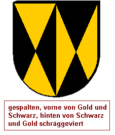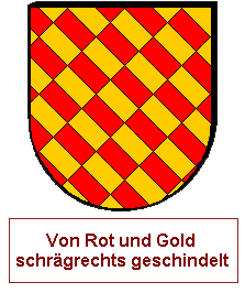 Noch komplexer wird das, wenn wir Figuren gleicher Ausrichtung wie einen Schragen in Kombination mit einem schräggevierten Feld verwenden und die Schragen in verwechselten Farben (links) oder in abweichenden Tinkturen (rechts) präsentieren.