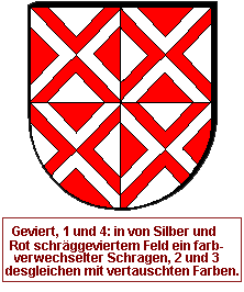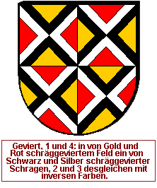 Die exakte Anzahl der Trennlinien ist dabei nicht festgelegt und unterliegt der künstlerischen Freiheit, allein der Forderung nach einem harmonischen Gesamteindruck und guter Erkennbarkeit unterworfen. Die Angabe der Farben erfolgt in der Heraldik eigentlich immer so, daß zuerst die oben bzw. rechts vorhandene Farbe angesprochen wird, dann die unten bzw. links liegende. Dies ist hier aufgrund der Struktur nicht mit bindender Eindeutigkeit möglich.